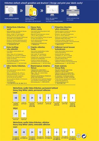 Etikett, 99,1x42,3 mm, poliészter, időjárásálló, AVERY ZWECKFORM, fehér, 240 etikett/csomag