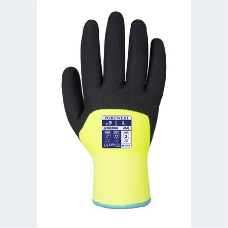 Védőkesztyű, téli, dupla bélés, nitril, mártott, L méret, sárga-fekete